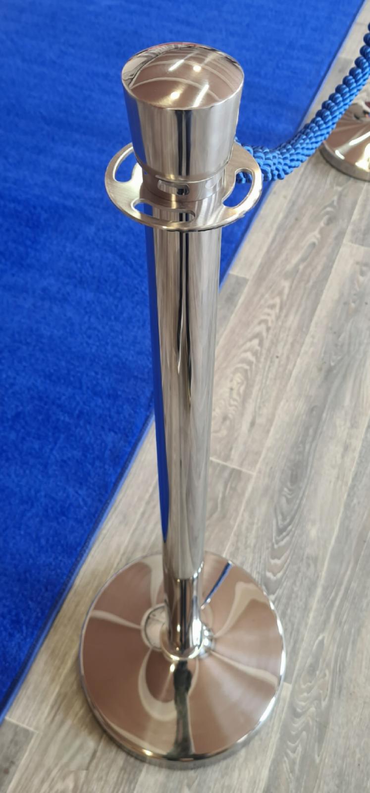 Available in chrome, gold, or black finishes, with ropes in red, blue, black, and gold (other colours available on request), they provide a stylish and functional way to guide guests and define walkways — making them the perfect addition to any high-traffic event space.